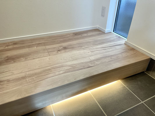 小上がりには間接照明が優しく光り高級感があります。