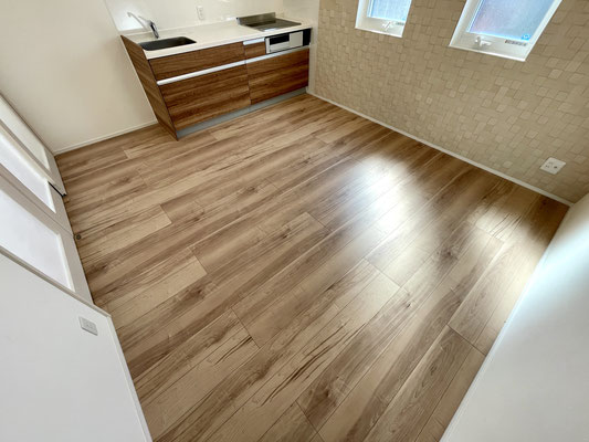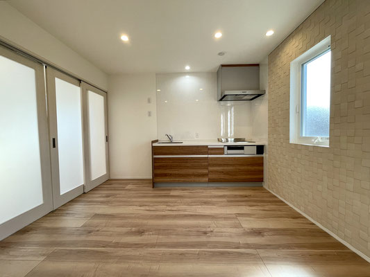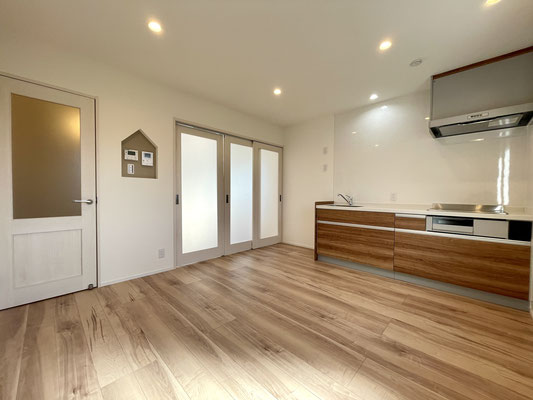 小上がりの先には2階に通じる階段があり、扉を開けると8.2帖のLDKです。