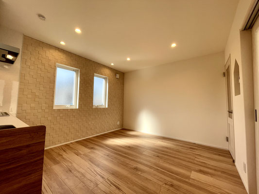 ナチュラルな質感のフローリングと凸凹の壁が特徴的な素敵な雰囲気のお部屋〜