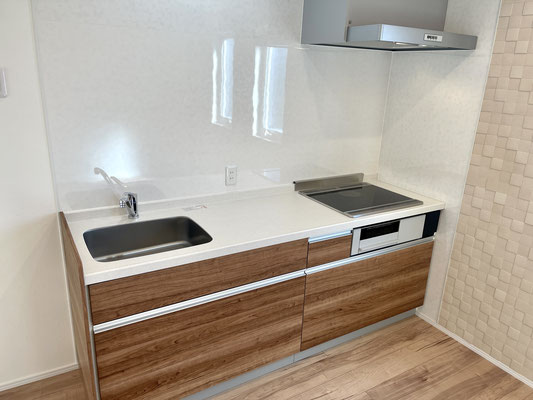 お部屋の中には使い勝手の良さそうな大きなキッチンがあり日々の調理も捗ります。