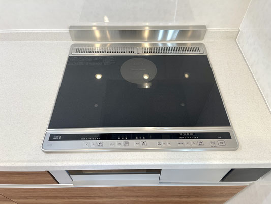 お手入れのしやすいIHコンロに、広い調理スペース。