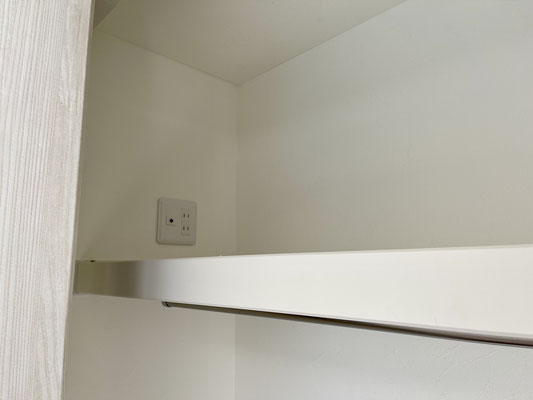 その隣には洗濯機置場とハンガーラック付きの棚が準備されています。