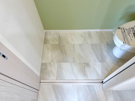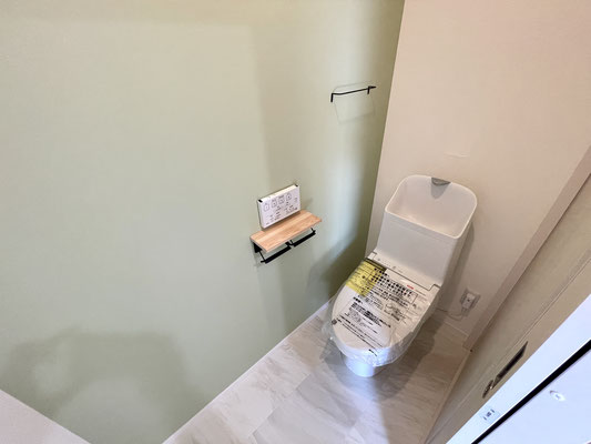 淡いグリーンのアクセントクロスがとっても落ち着くトイレ〜