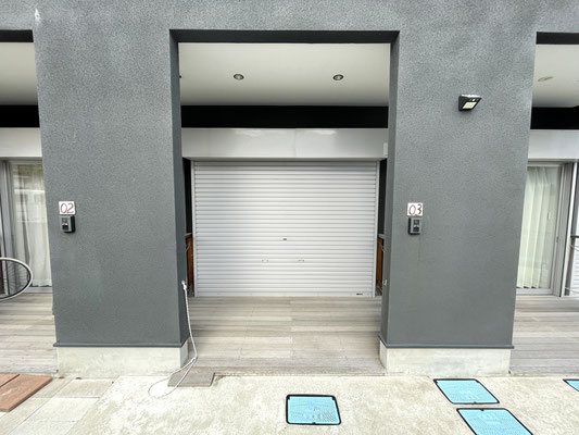シャッターの内側にはガラスのスライドドアがあります。