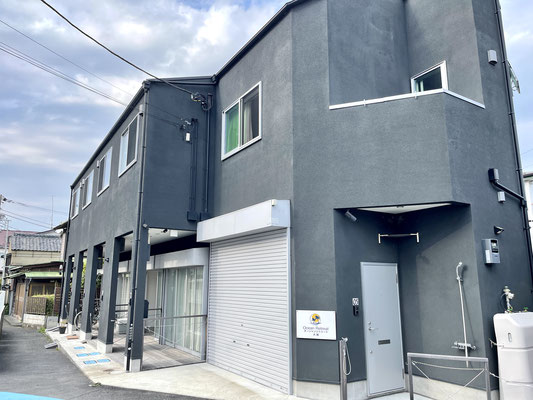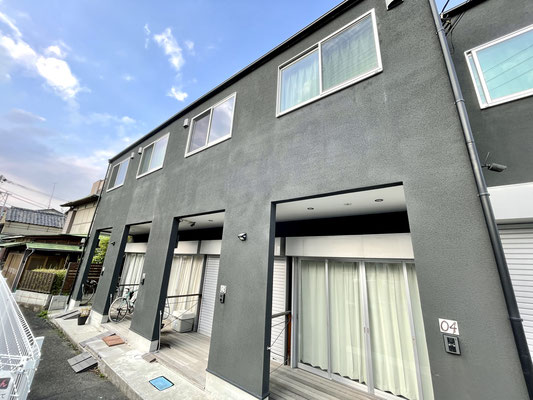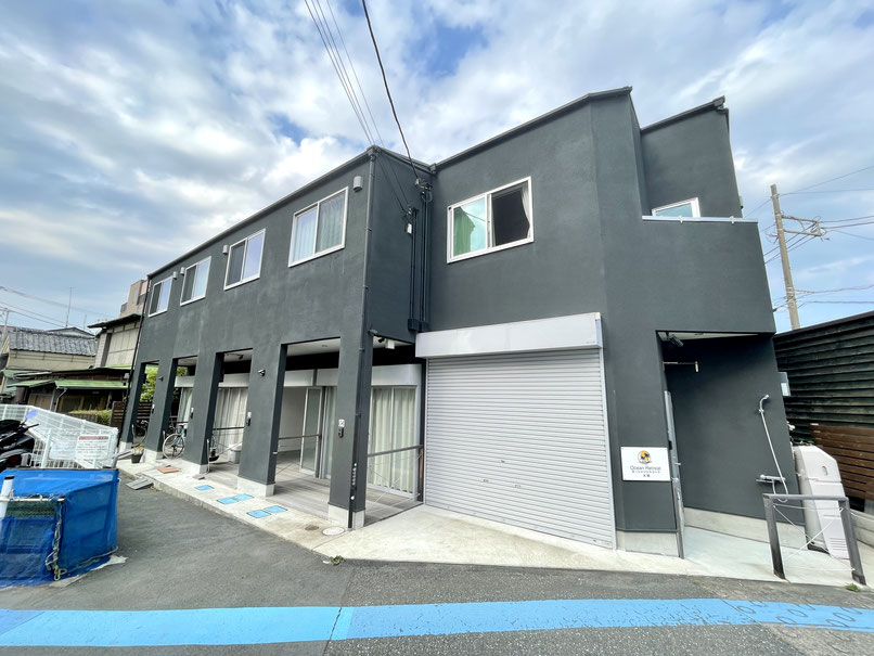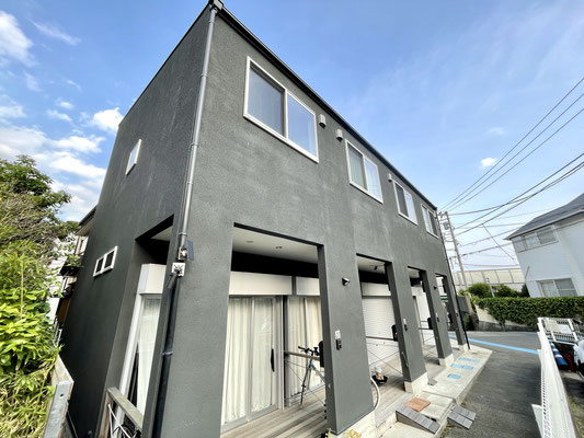 建物外観は黒系のペイントがされた外壁がモダンな外観。