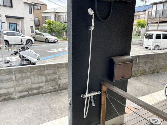 すぐ近くの海で遊んだ後はお部屋に入る前にキレイに!!