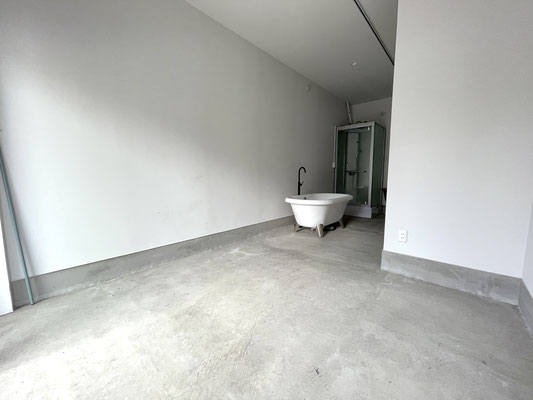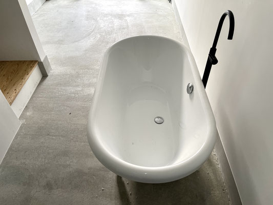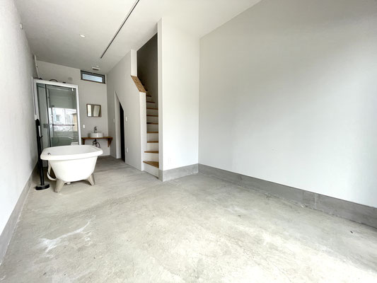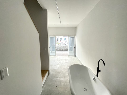なんと土間のある1階のガレージ内にはバスタブがあります。