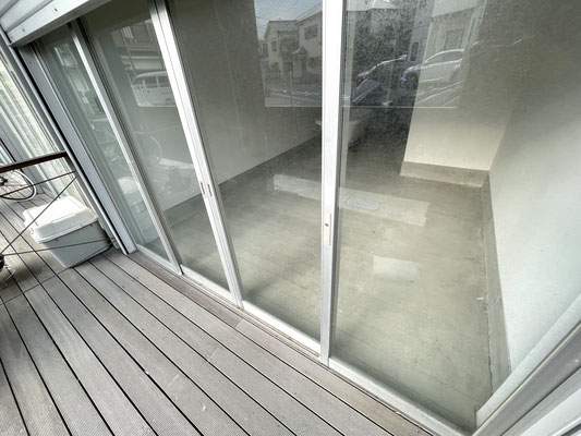 ウッドデッキの入り口の間口は約1.7m 中のスライドドアの間口は約1.2m