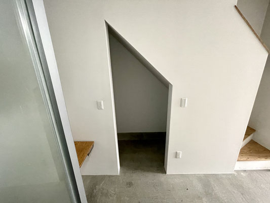 階段下は洗濯機置場〜