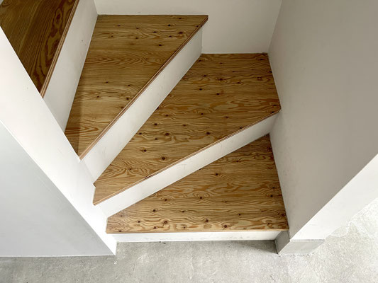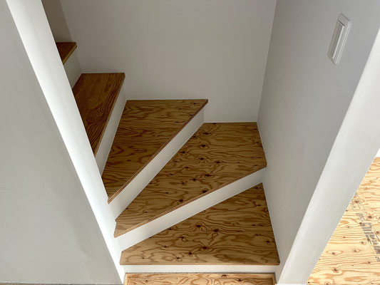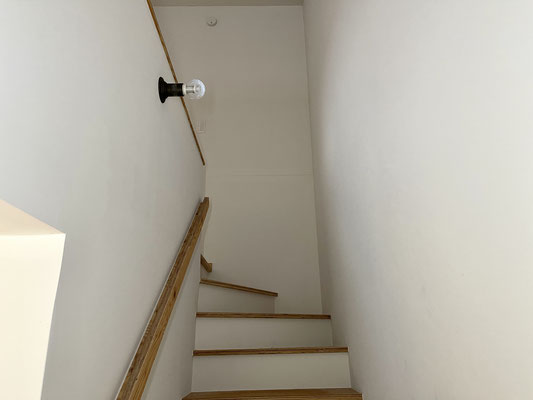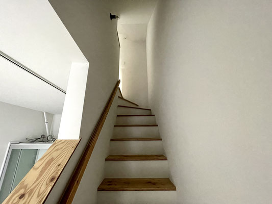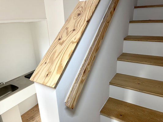 階段の手すり部分も床材と同じく木のぬくもりを感じるね〜