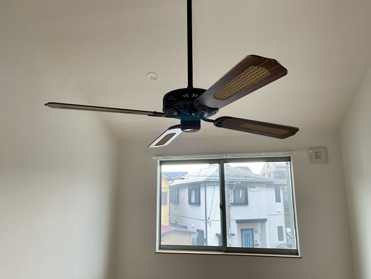 高い天井にはシーリングファンも完備されています。