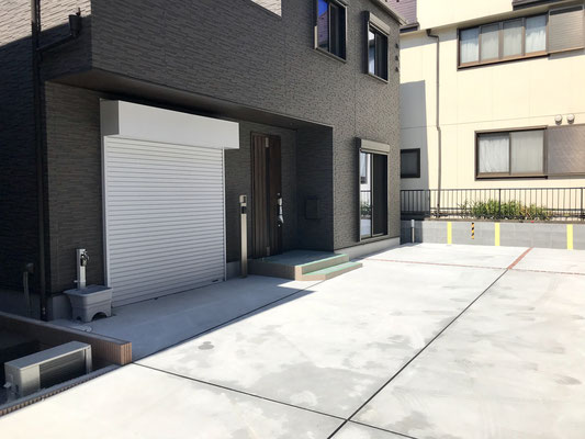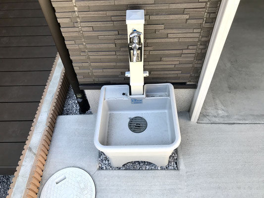 ガレージ前には洗車に便利な水栓もあって良いですね〜