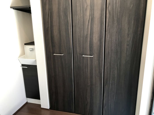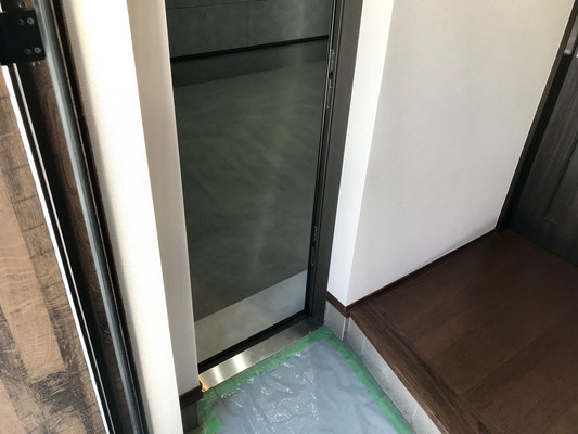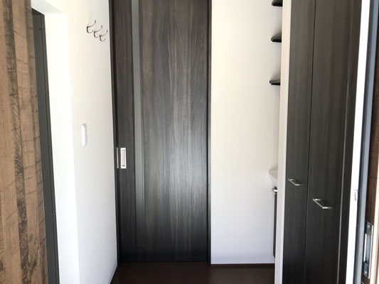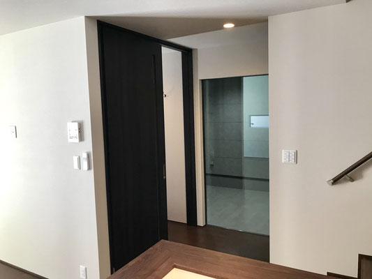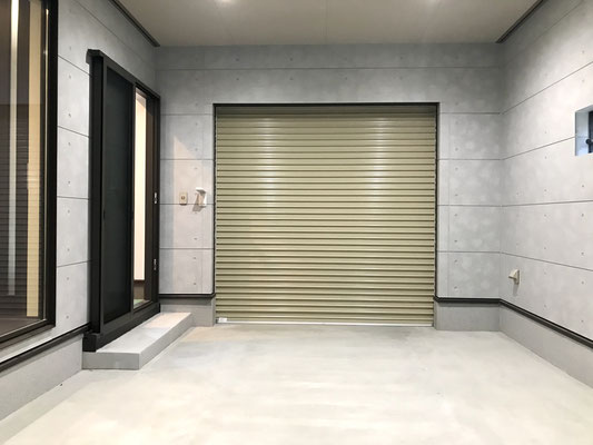 玄関入ってすぐ左にはガレージに通じているスライドドアがあります。