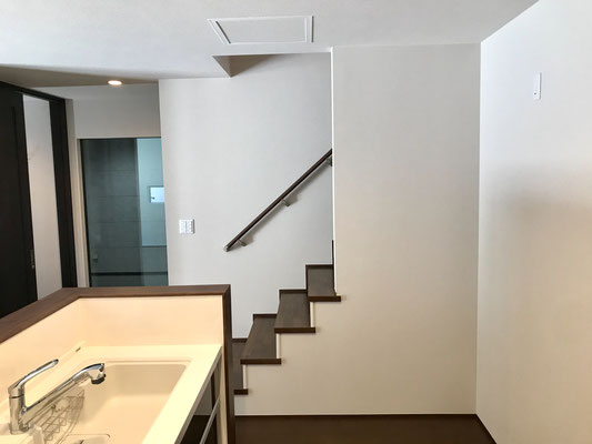 階段は下の部分の壁が無いのでLDKが広く見えますね。
