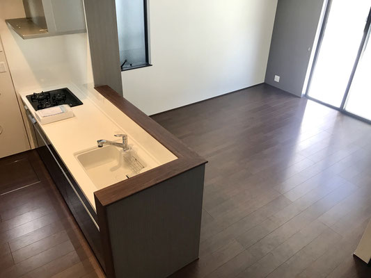 人気の対面キッチンも十分なスペースがある大型キッチン。