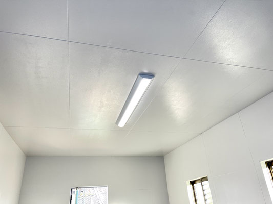 ガレージ内には換気の出来る窓やLED照明が設置済。