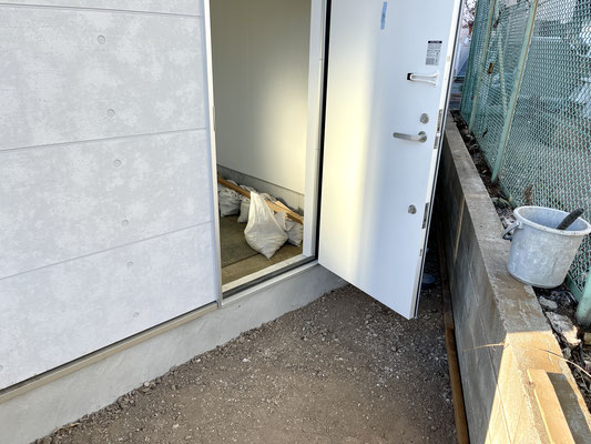 ガレージ奥の扉を開けるとちょっとしたスペースがあります。