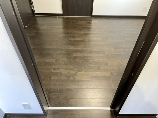 暗めの色味のフローリング床と白でまとめた壁のコントラストが良いね♪