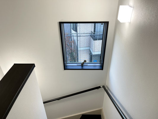 階段にも窓があって明るい階段です。