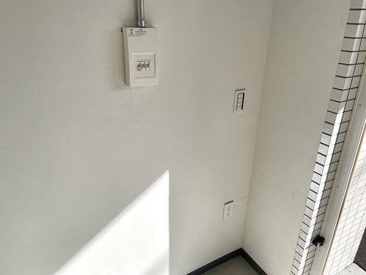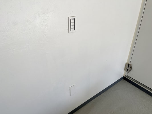 床はコンクリート土間仕上げ、壁はデコボコした質感のペイント仕上げ。