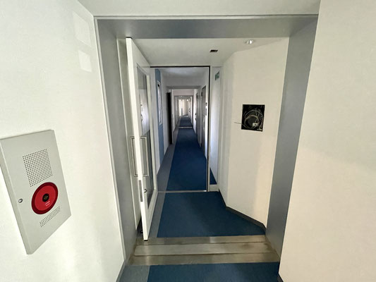 踊り場からは各戸の玄関ドアが並ぶ共用スペース。
