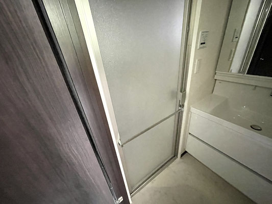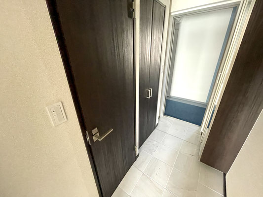 廊下の反対側、左手には洗面台のある脱衣所〜