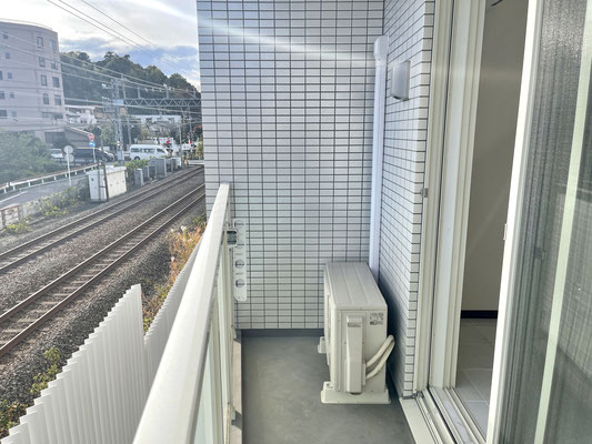 バルコニーは変形で広さもさほどありませんが、フェンスがハーフクリアーな物を使用しているので
