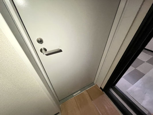1階の踊り場左手にはガレージと通じている重厚なドアがあります。