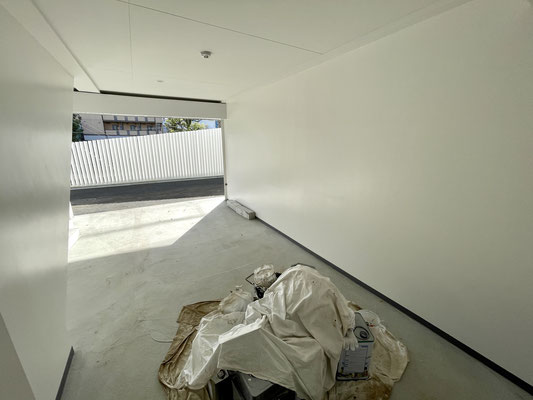 白を基調としたシンプルなガレージはどんな車両にも似合いそう♪