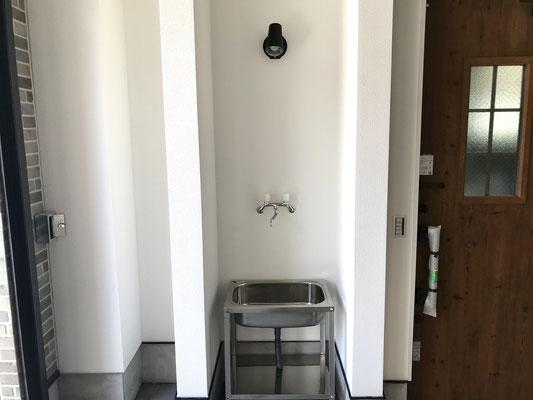 ガレージ内にある水栓は洗車や手洗いにも便利!