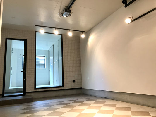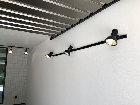 壁と天井に付いているライティングレールには愛車を照らしてくれるライトが完備されています。