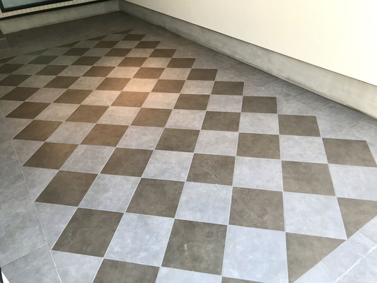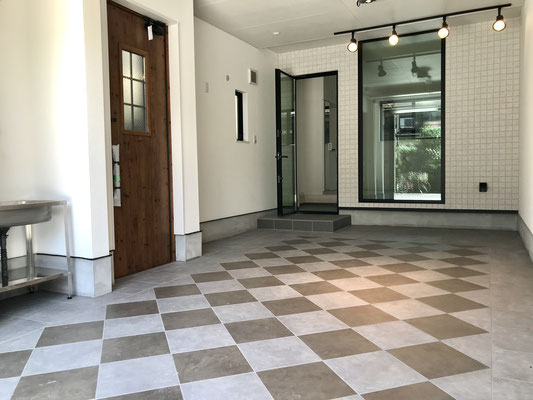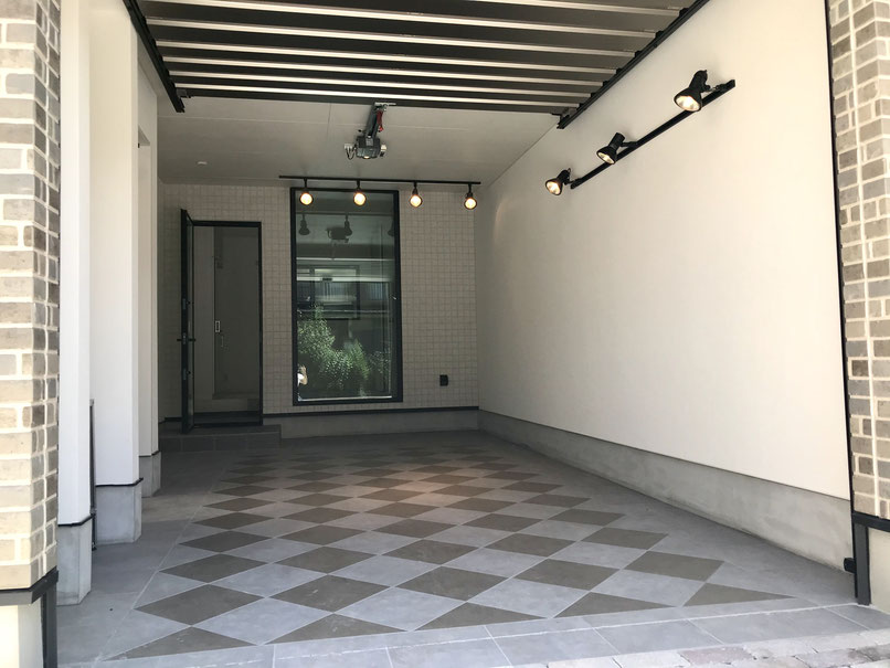 タイル張りのガレージは落ち着いた雰囲気でどんな車両でも似合いそう♪