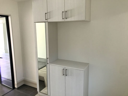 内玄関近くには姿見付きのシューズラック付き。
