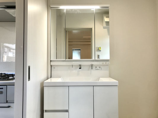 さて、LDKを挟んで寝室の反対側は洗面台のある脱衣所。