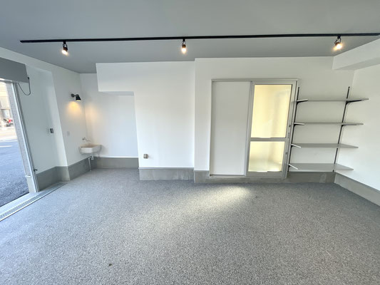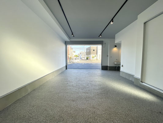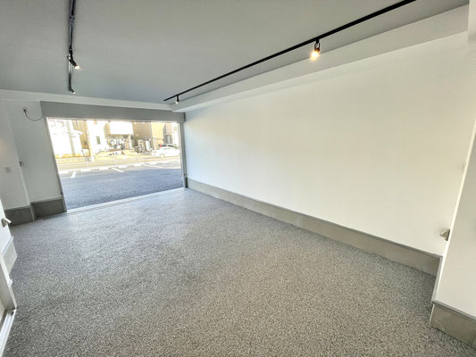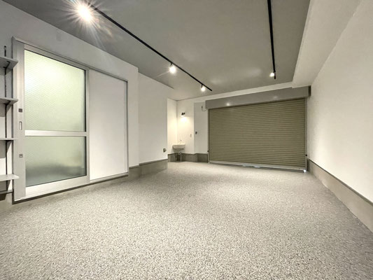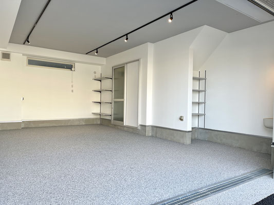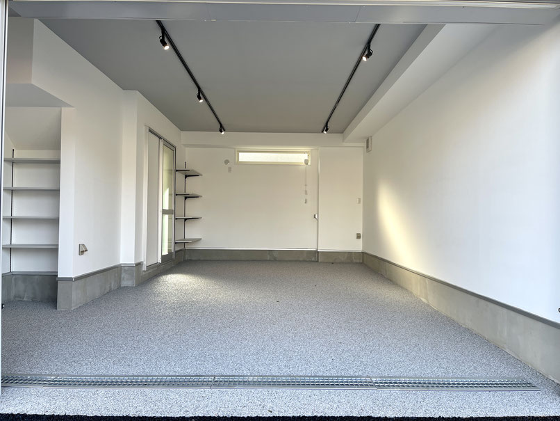 電動シャッターを開けるとガレージ内はご覧の通り〜