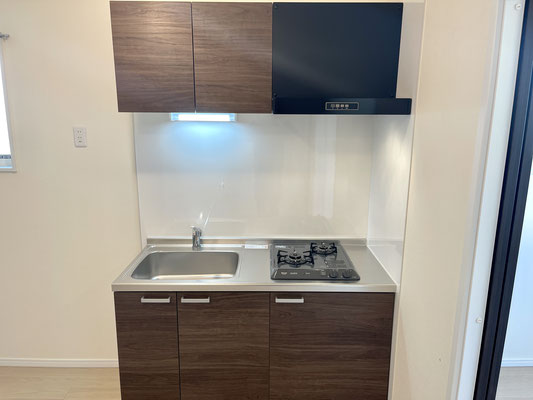 システムキッチンはコンパクトながら使い勝手が良さそう♪