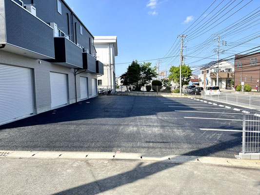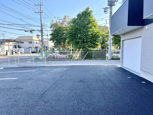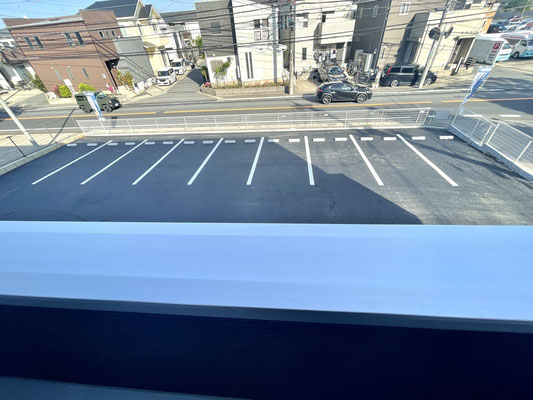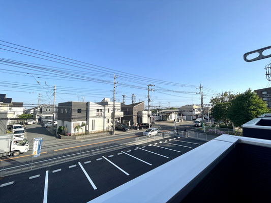 建物の前面が駐車場、道路と抜けているためとても気持ちの良いバルコニーです♪