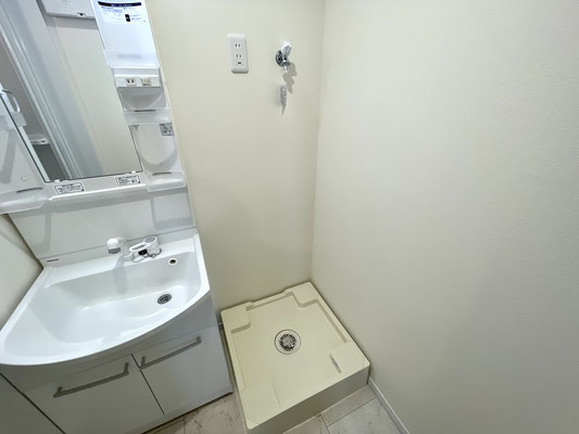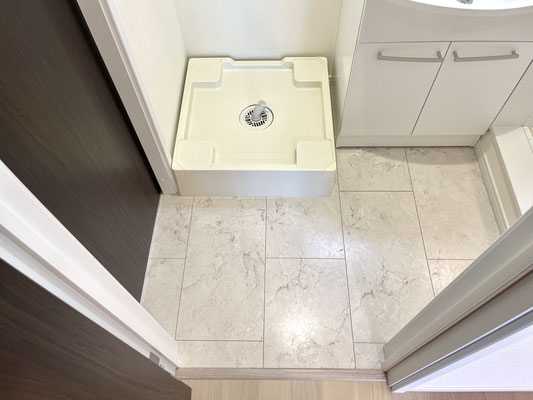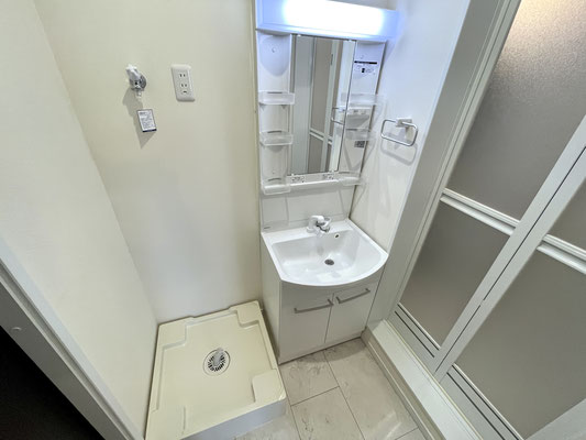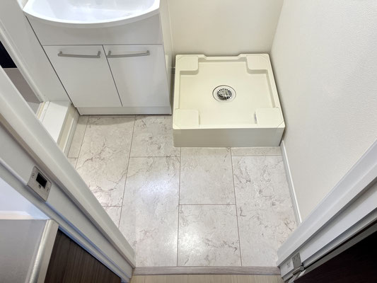 扉を開けると洗濯機置場と独立洗面台がある脱衣所があります。