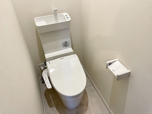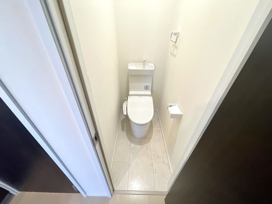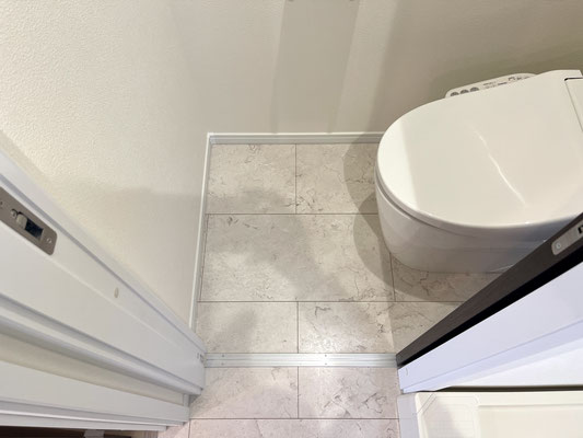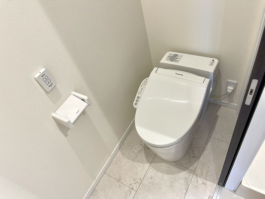 脱衣所に入ってすぐ左手のドアを開けるとトイレがあります。
