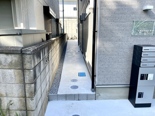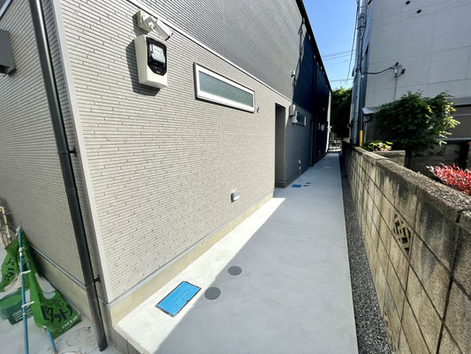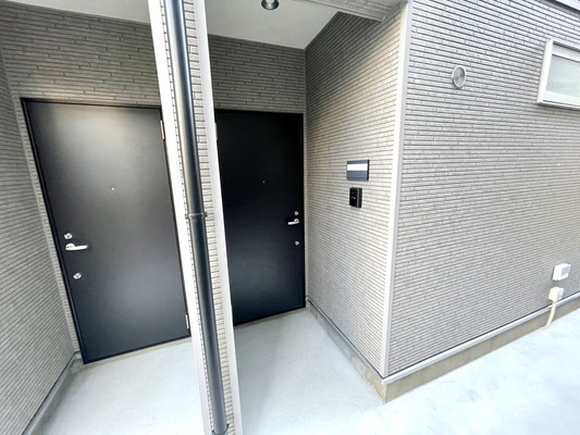 こちらも玄関ドアは建物裏手にあります。