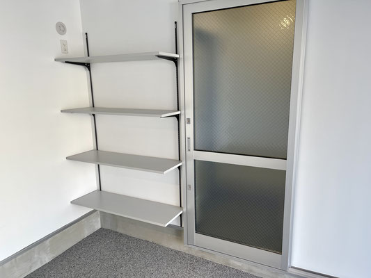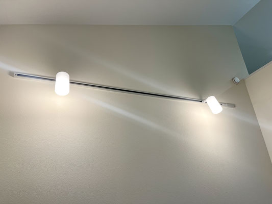 お部屋の中には収納があり、天井にはライティングレールがありお部屋の中を照らしてくれます。