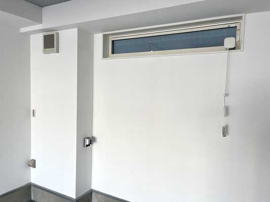 開閉可能な窓、換気扇、EV用の電源、各所に普通電源などなど。