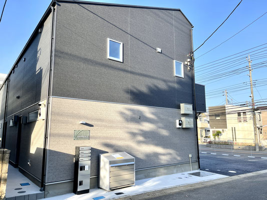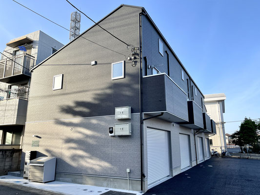 建物外観は1階と2階で違うカラーの外壁が特徴的な4戸物件。