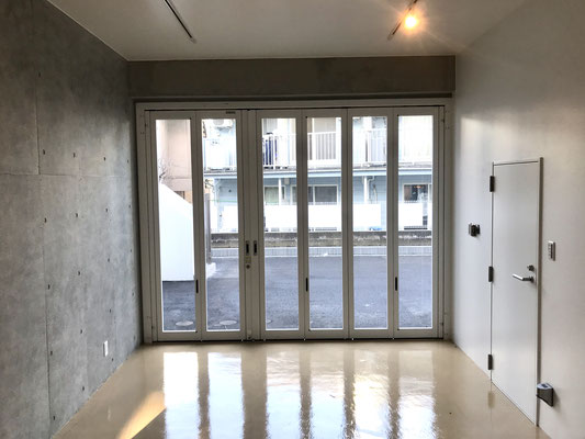 シャッターだけでなくアコーディオン式の中扉があるのが嬉しいですね〜