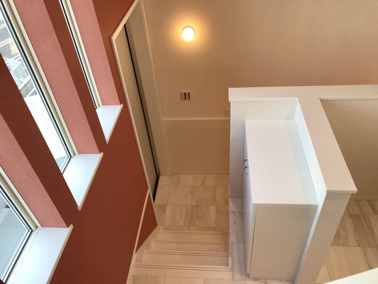 広さのある階段を登って玄関のある2階へ。
