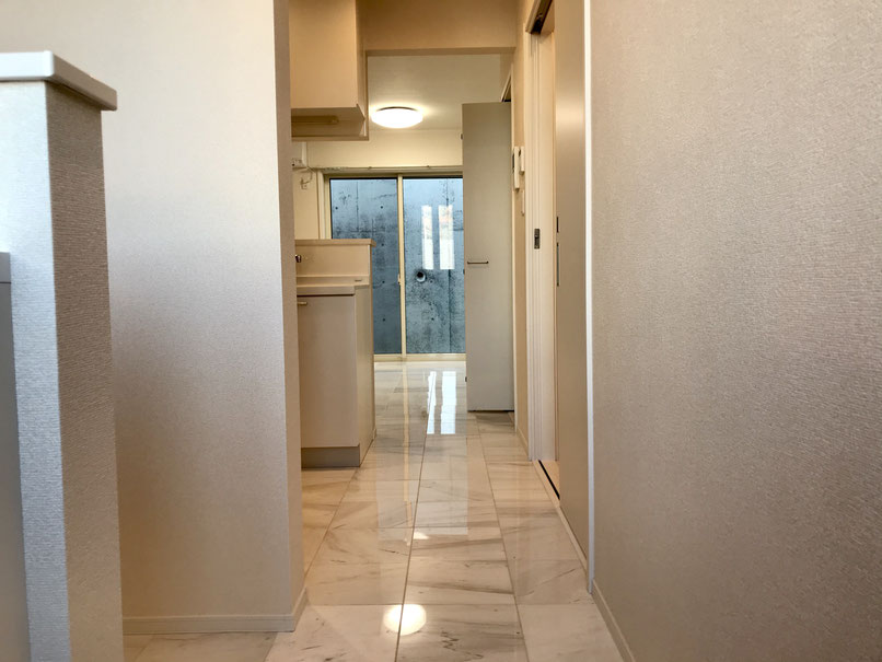 このフロアは大理石の床材で高級感があります。