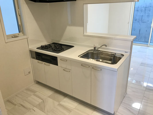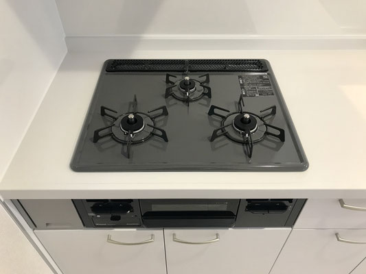 賃貸のガレージハウスでは珍しい3口コンロや広めのシンクなど