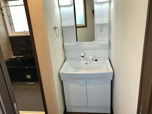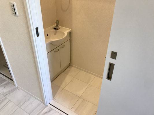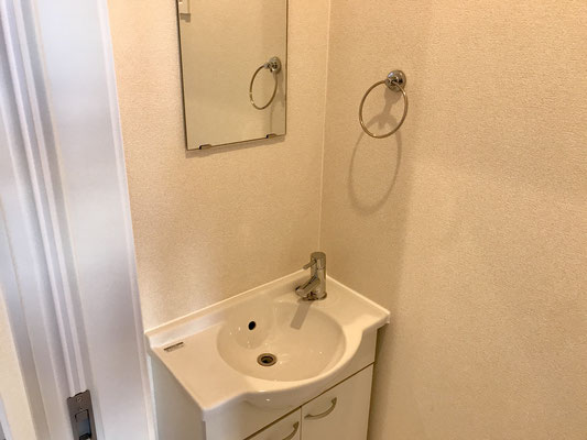 廊下の反対側は洗面台とトイレ。