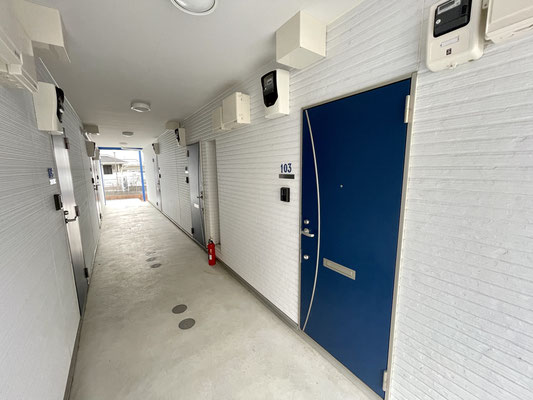 ガレージ奥の扉を開けると共有廊下に出ます。