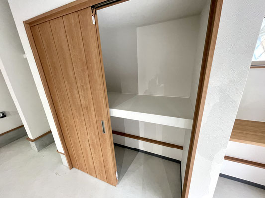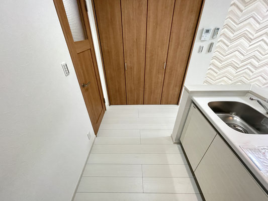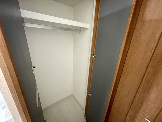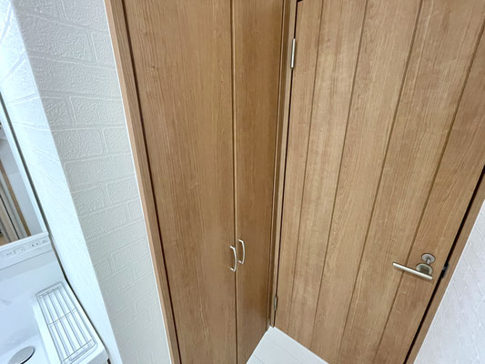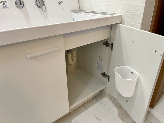 ドア付近には扉付きの収納だってあるし、大きな洗面台も大収納!